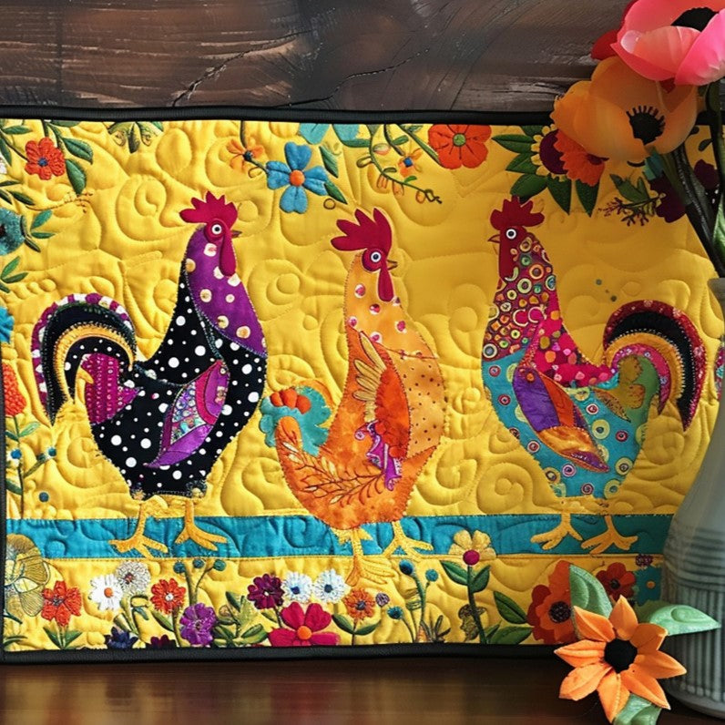 Radiant Rooster Paradise Artisan Quilt Artwork