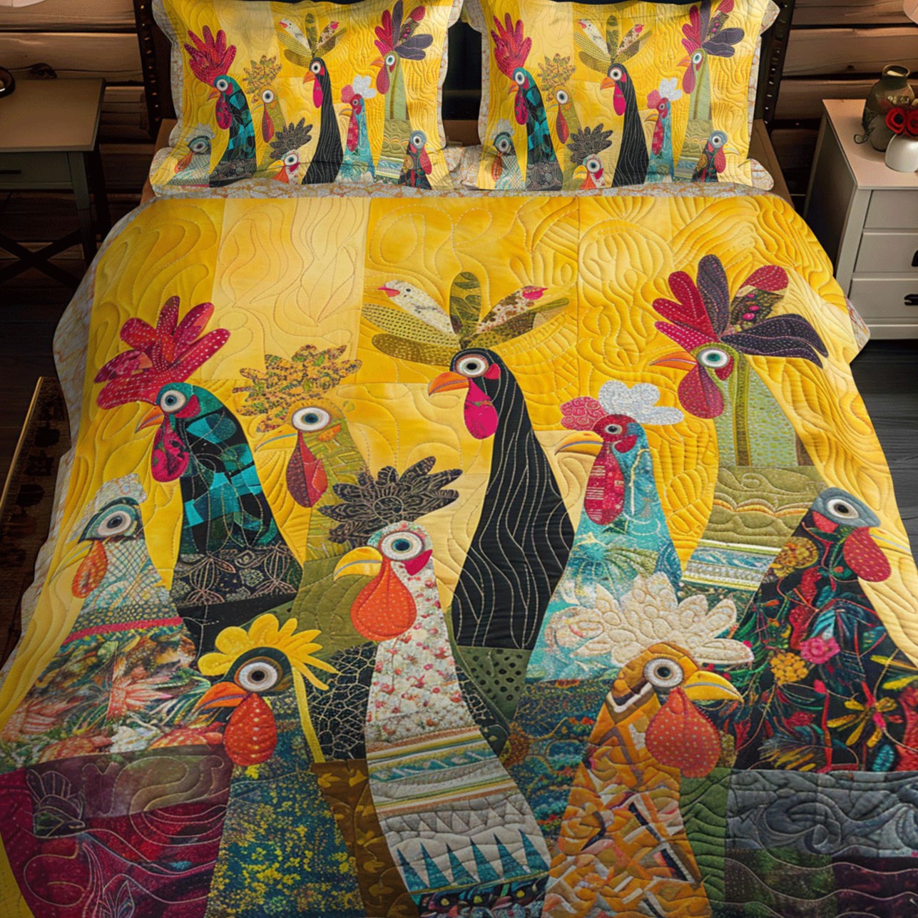 Sunrise Roosters Artisan Quilt Artwork