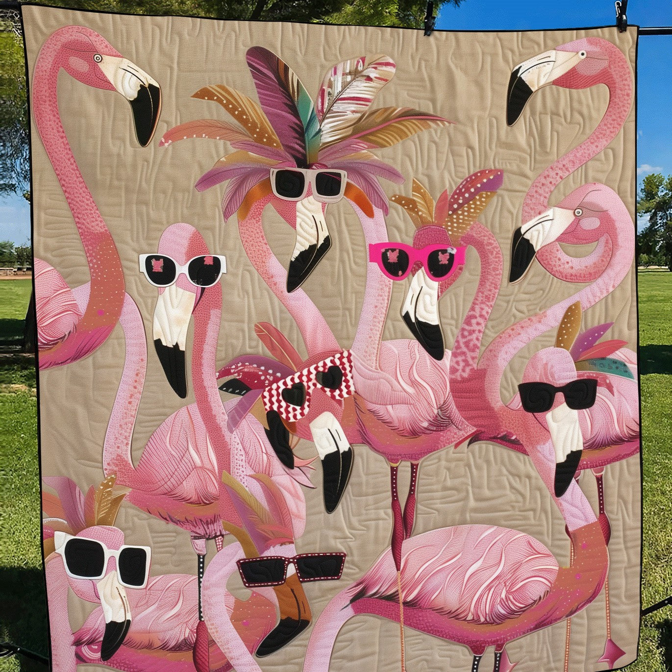 Tropical Flamingo Delight Artisan Quilt Artwork